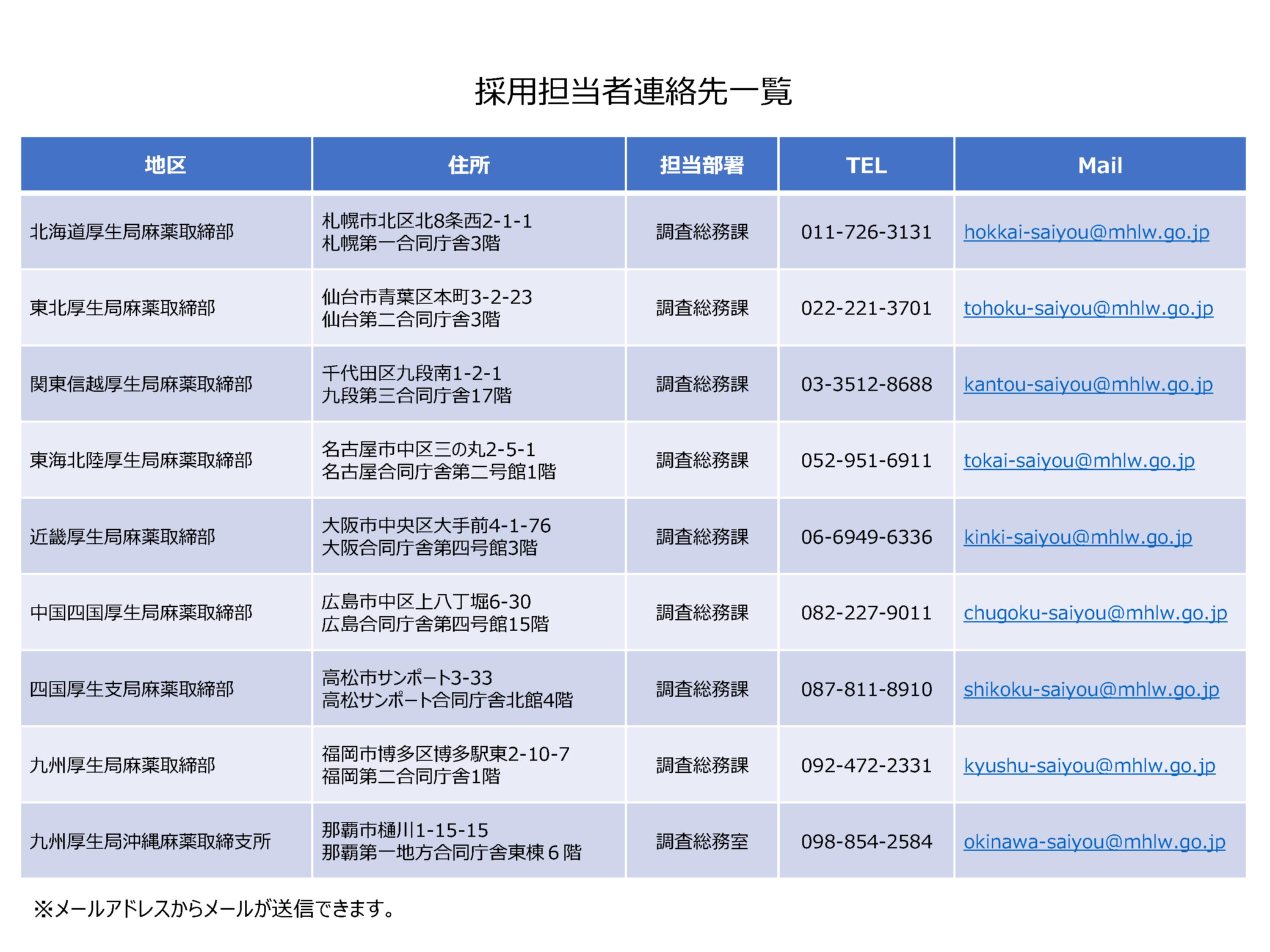 各麻薬取締部が参加するイベント会社等が主催の業務説明会に関する情報です。